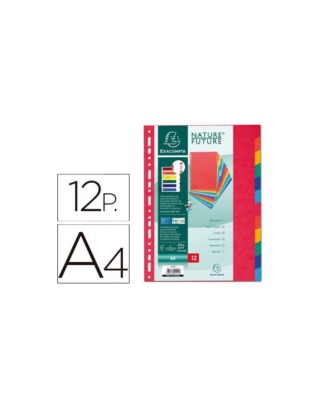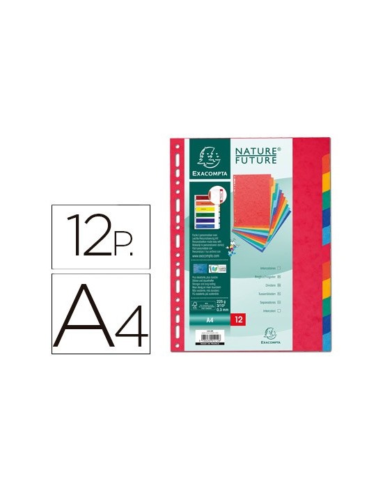 Separador exacompta cartulina simil prespan juego de 12 separadores din a4 multitaladro colores vivos