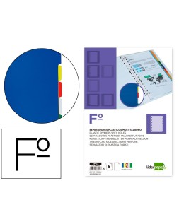 Separador liderpapel plastico juego de 5 separadores folio 16 taladros