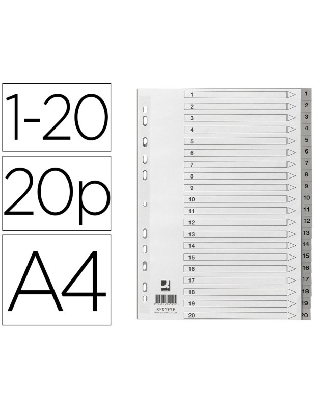 Separador numerico q-connect plastico 1-20 juego de 20 separadores din a4 multitaladro