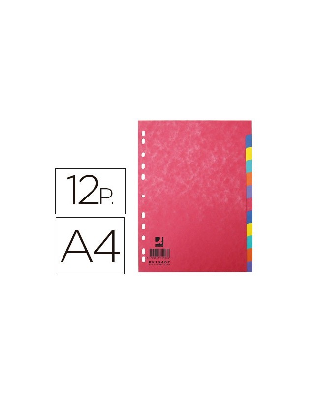 Juego de separadores fabricado en cartulina brillo de color de 225 g/m². Disposición en escalera para agilizar la consulta e identificación de documentos. Multitaladro para archivar en diferentes mecanismos de anillas. Colores vivos opacos. En formatos DIN A4 y A4+.