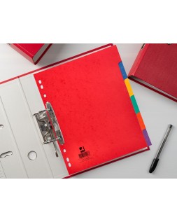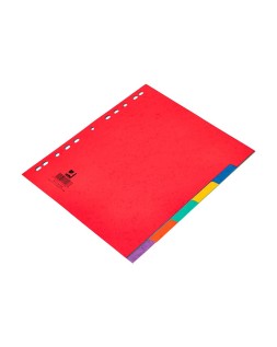 Juego de separadores fabricado en cartulina brillo de color de 225 g/m². Disposición en escalera para agilizar la consulta e identificación de documentos. Multitaladro para archivar en diferentes mecanismos de anillas. Colores vivos opacos. En formatos DIN A4 y A4+.
