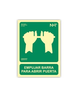Pictograma archivo 2000 empujar barra para abrir puerta pvc verde luminiscente 224x300 mm