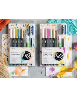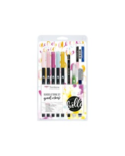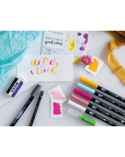 Set que contiene el material necesario para crear degradados de color armoniosos. El set contiene un pequeño manual de instrucciones con consejos y trucos para la técnica de mezcla en el hand lettering, por lo que los setsson interesantes tanto para principiantes como usuarios un poco más avanz ados. Productos incluidos en el set: Rotuladores ABT DUAL Brush doble punta fina para crear líneas más definidas y detalles y punta de pincel flexible para aplicar el color. Los colores se pueden mezclar con agua. Pincel Water Brush con depósito rellenable para extender, suavizar y difuminar loscolores con agua. Rotulador de caligrafía Fudenosuke con punta fina de pi ncel para trazos firmes. Grado de dureza 1 (duro). Tinta color negro. Lápiápiz de grafito MONO 100 a prueba de borrones para