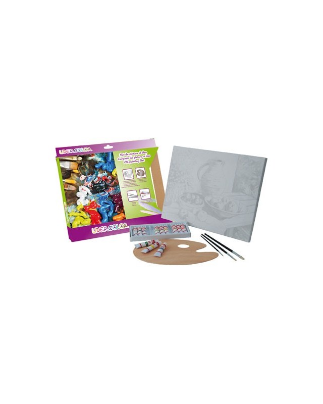 Set pintura al oleo lidercolor contiene 1 lienzo imprimacion 30x40cm 1 paleta madera 3 brochas tubos 12x12ml oleo