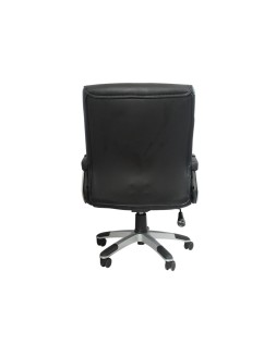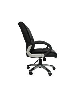 Silla ergonómica giratoria 360°. Mecanismo asincronizado. Asiento y respaldo: tapizados en polipiel. Color negro. Pistón: de gas para regulación de altura. Base: de nylon. Altura de la silla: 98 + 8,5 cm. Altura del respaldo: 80 cm. Altura del asiento: 46-54,5 cm. Ancho del asiento: 55 cm. Profundidad del asiento: 55 cm. Brazos: fijos en plástico. Ruedas: De nylon. 5 cm Ø. Horas de uso: 6 horas. Peso de la silla / peso máximo soportado: 18,20 kg / 100 kg.