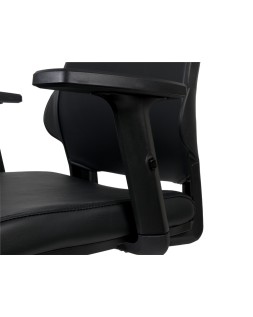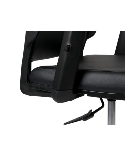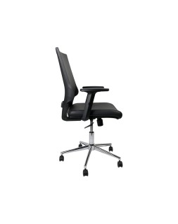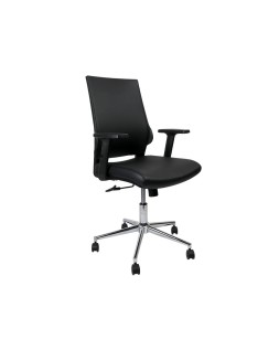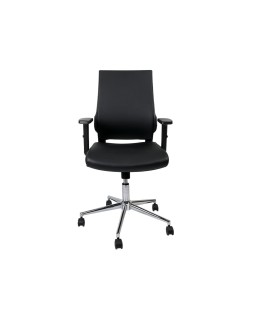 Silla de oficina ergonómica giratoria 360º. Asiento y respaldo : cubierto de espuma y tejido símilpiel de color negro. Asiento regulable en altura, reposabrazos de polipropileno regulables en altura. Base cromada con 5 ruedas de nylon de 6cm de diámetro. Horas de uso : 8 horas. Peso neto : 12 kg. Peso máximo soportado : 200 kg. Medidas : 980+100 x 650 x 625 mm.