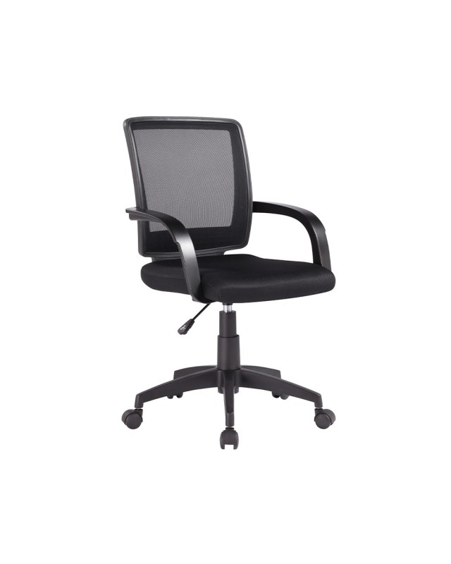 Silla ergonómica y giratoria 360°. Respaldo: malla de nylon que proporciona gran comodidad. Asiento: tapizado en tejido de malla. Pistón: cilindro de gas de 11,5 cm. Base: de plástico. Altura de la silla: 90 + 10 cm. Altura del respaldo: 46 cm. Altura del asiento: 44-54 cm. Ancho del asiento: 47 cm. Profundidad del asiento: 57 cm. Brazos: fijos fabricados en plástico. Ruedas: nylon. 6 cm Ø. Horas de uso: 5 horas. Peso de la silla / peso máximo soportado: 8,75 kg / 120 kg.