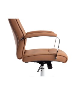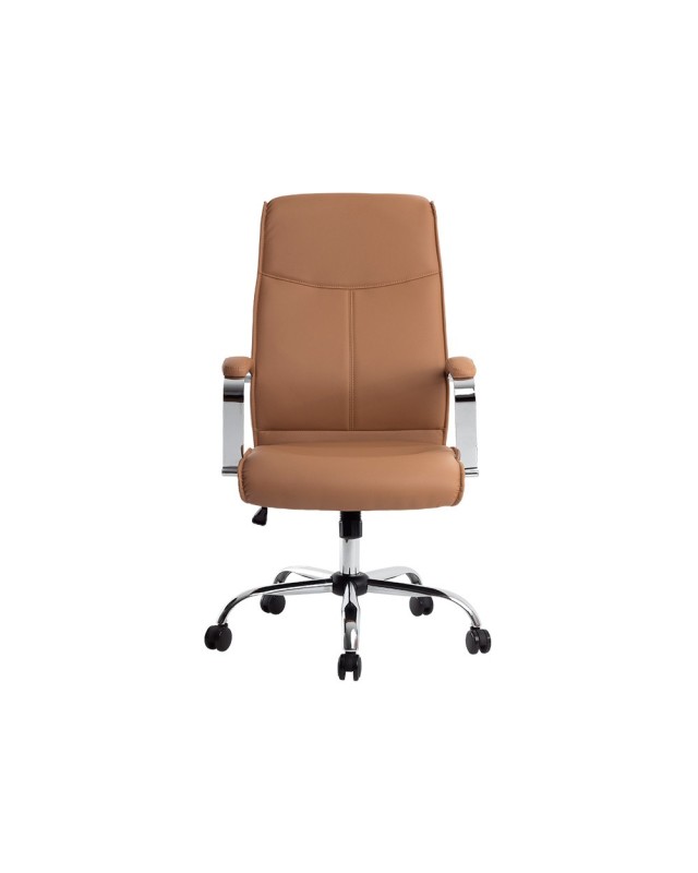 Silla de dirección con diseño fino y sofisticado tapizada de simil piel encolor crema, perfecta para añadir un toque de elegancia a cualquier espac io. Ofrece una combinación de comodidad y estilo. Tiene un diseño cuidado al detalle, con unos brazos acolchados con base metálica cromada brindan un soporte adicional y un aspecto moderno y atractivo. La silla cuenta con un mecanismo de mariposa que permite ajustar fácilmente la altura y la inclinación del asiento, adaptándose a tus preferencias y necesidades de confort. Gracias al gaslift de 80 mm cromado, podrás ajustar la altura de la silla con suavidad y precisión. La base cromada de 350 mm proporciona estabilidad y resistencia, asegurando que la silla se mantenga firme y segura durante su uso. Equipada con ruedas premium, ofr