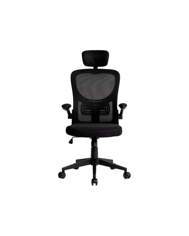 Silla ergonómica de diseño de malla color negro. El equilibrio perfecto entre confort y funcionalidad. Su diseño moderno y funcional se adapta a cualquier ambiente y aporta un toque de estilo a tu espacio de trabajo. Cuenta con reposacabezas ajustable que permite personalizar la posición y el apoyo para el cuello y cabeza, asegurando una postura cómoda durante largos períodos de tiempo. Además, cuenta con un refuerzo lumbar que se adapta a la curva natural de tu espalda, brindando un soporte adicional y reduciendo el estrés. La silla está fabricada con materiales de alta calidad, incluyendo una malla transpirable que proporciona una ventilación adecuada, evitando la acumulación de calor. Sus reposabrazos ajustables te permiten encontrar la posición perfecta para tus brazos, lo