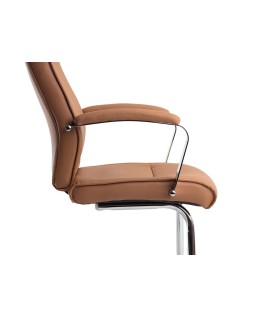 Silla de escritorio con diseño fino y sofisticado, tapizada en una elegante simil piel de color crema. Con su cuidado diseño al detalle, esta silla es perfecta para añadir un toque de elegancia a cualquier espacio. El marco de metal cromado le otorga resistencia y durabilidad, al tiempo que resalta su aspecto moderno y atractivo. Los brazos acolchados con base metálica cromada no solo brindan un soporte de confort adicional, sino que también le dan a la silla un aspecto moderno y atractivo. Ya sea en tu oficina, sala de reuniones o espacio de trabajo en casa, esta silla se adapta perfectamente a cualquier ambiente dando un toque de diseño y sofisticación. Con su tapizado en simil piel de color crema, esta silla es fácil de combinar con diferentes estilos de decoración y se integr