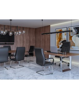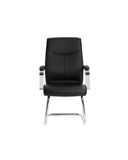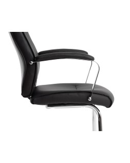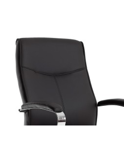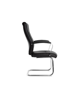 Silla de escritorio con diseño fino y sofisticado, tapizada en una elegante simil piel de color negro. Con su cuidado diseño al detalle, esta silla es perfecta para añadir un toque de elegancia a cualquier espacio. El marco de metal cromado le otorga resistencia y durabilidad, al tiempo que resalta su aspecto moderno y atractivo. Los brazos acolchados con base metálica cromada no solo brindan un soporte de confort adicional, sino que también le dan a la silla un aspecto moderno y atractivo. Ya sea en tu oficina, sala de reuniones o espacio de trabajo en casa, esta silla se adapta perfectamente a cualquier ambiente dando un toque de diseño y sofisticación. Con su tapizado en simil piel de color negro, esta silla es fácil de combinar con diferentes estilos de decoración y se integr