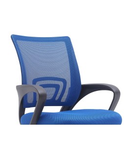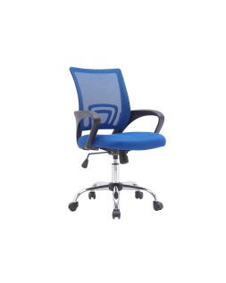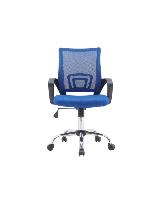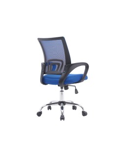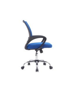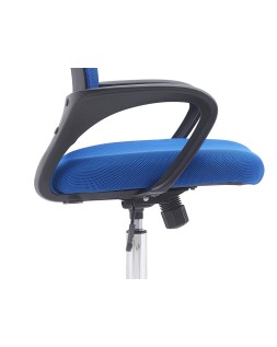 Silla de oficina de diseño minimalista y elegante, con estructura negra y respaldo de malla, así como un cojín de color azul. El respaldo de malla transpirable, proporciona una excelente ventilación y comodidad durante tuslargas jornadas de trabajo. Los reposabrazos de polipropileno brindan un apoyo adicional a tus brazos, permitiéndote mantener una postura cómoda mientras trabajas. Además, el mecanismo de mariposa permite ajustar fácilmente la inclinación del respaldo para encontrar la posición deseada. Con un gaslift pintado de 100 mm, podrás ajustar la altura de la silla según tus preferencias y necesidades. La base cromada proporciona estabilidad y durabilidad, asegurando que la silla se mantenga firme en todo momento.