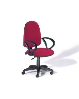 Silla giratoria regulable en altura. Asiento y respaldo: tapizados en tela. Pistón: de gas para regulación de altura. Base: polipropileno negro con ruedas. Altura de la silla: 96 + 13 cm. Altura del respaldo: 49 cm. Altura del asiento: 45-54 cm. Ancho del asiento: 47 cm. Profundidad del asiento: 46 cm. Brazos: plástico. Ruedas: ruedas de nylon de 5 cm de diámetro de rodadura interna con eje de acero. Horas de uso: 8 horas. Peso de la silla / peso máximo soportado: 11 kg / 125 kg. Certificado: UNE 1335 -1/ -2.