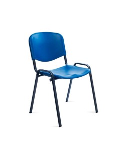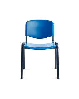 Silla apilable. Respaldo y asiento: polimérico técnico. Colores: azul y negro. Base: estructura tubular metálica reforzada pintada en epoxy color negro. Altura de la silla: 81 cm. Altura del asiento: 48 cm. Ancho del asiento: 57 cm. Profundidad del asiento: 41 cm. Altura del respaldo: 40 cm. Horas de uso: 5 horas. Peso de la silla / peso máximo soportado: 5,2 kg / 100 kg.Certificado: UNE 16139.