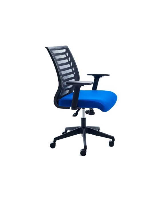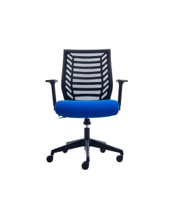 Silla rocada de oficina con brazos respaldo en malla transpirable y asiento tapizado en tela ignifuga