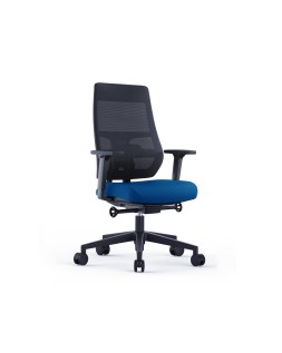 Silla rocada direccion con brazos regulables base polimero respaldo de malla y asiento en tela azul