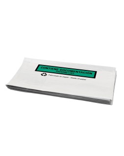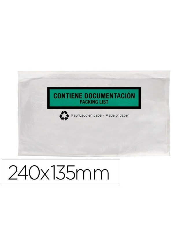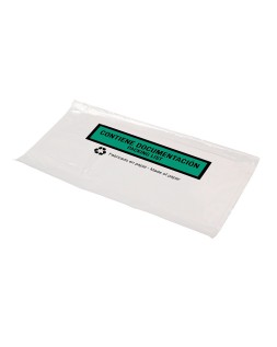 Sobre autoadhesivo Q-Connect porta documentos multilingüe 240 x 135 mm. sin ventana paquete de 100 unidades. Sobre autoadhesivo para el envío de documentos. Texto en inglés. Totalmente transparente, sin ventana, con impresión en negro y verde. Fabricado 100% con papel, no contiene plástico.