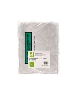 Sobre autoadhesivo Q-Connect porta documentos multilingüe 240 x 180 mm. sin ventana paquete de 100 unidades. Sobre autoadhesivo para el envío de documentos. Texto en inglés. Totalmente transparente, sin ventana, con impresión en negro y verde. Fabricado 100% con papel, no contiene plástico.