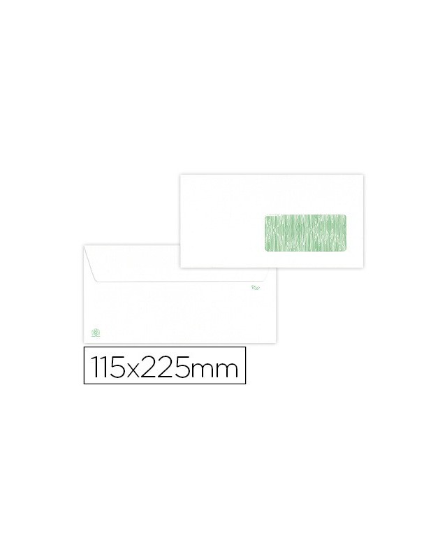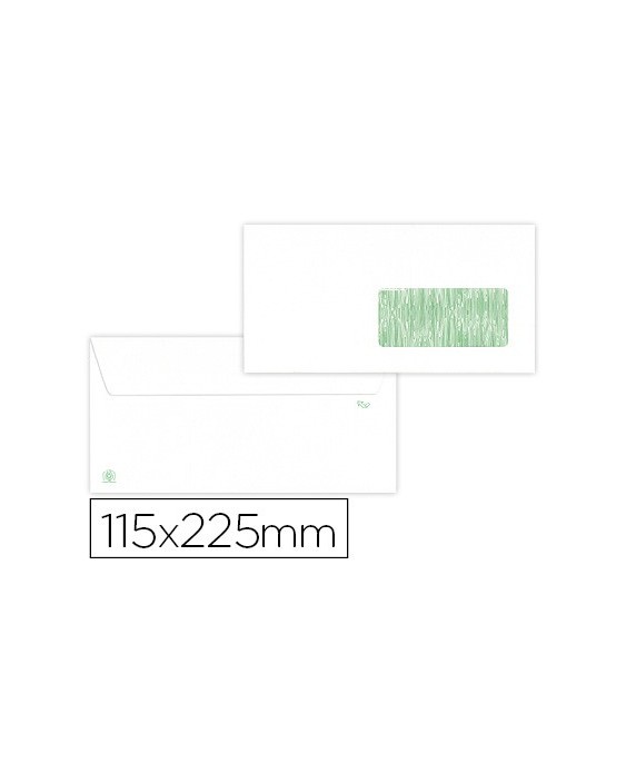 Sobre liderpapel blanco 115x225 mm ventana derecha solapa tira silicona reciclado 90 gr caja de 500 unidades