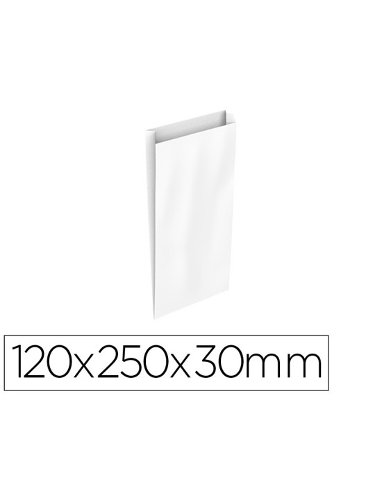 Sobre papel basika celulosa blanco con fuelle xs 120x250x30 mm paquete de 25 unidades