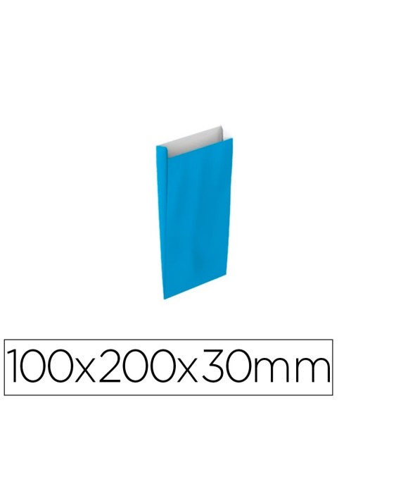 Sobre papel basika celulosa celeste con fuelle xxs 100x200x30 mm paquete de 25 unidades