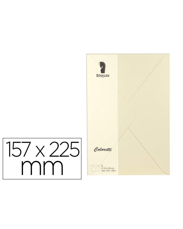 Sobre rossler coloretti c5 color crema 157x225 mm pack de 5 unidades