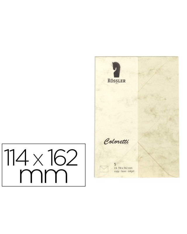 Sobre rossler coloretti c6 ministro color marmol crema 114x162 mm pack de 5 unidades