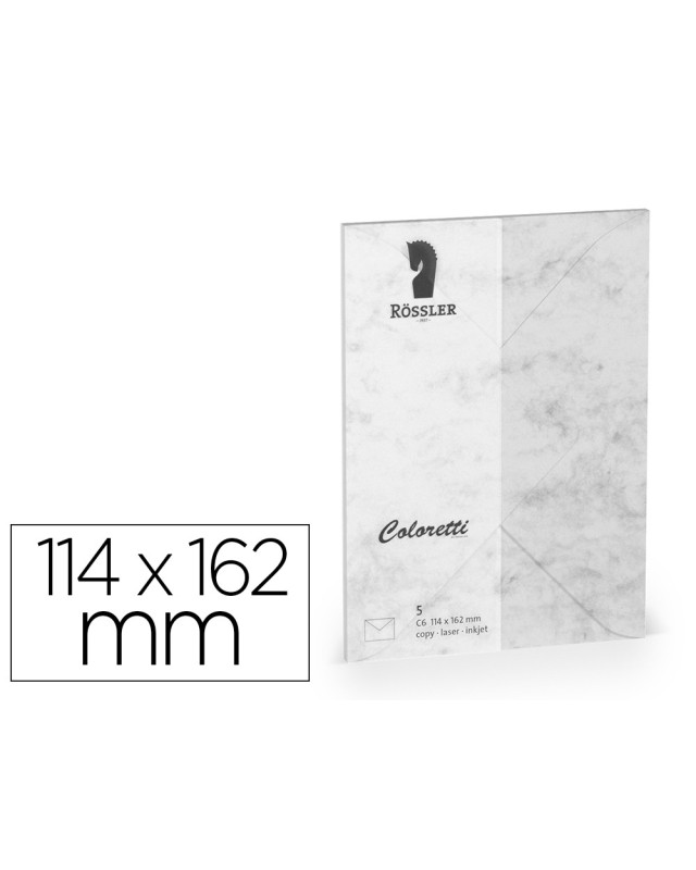 Sobre rossler coloretti c6 ministro color marmol gris 114x162 mm pack de 5 unidades