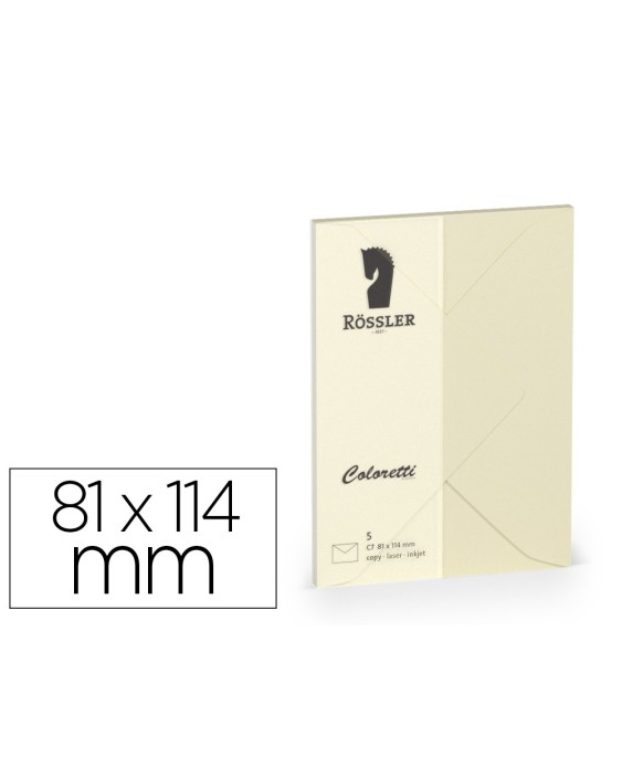Sobre rossler coloretti c7 color crema 81x114 mm pack de 5 unidades