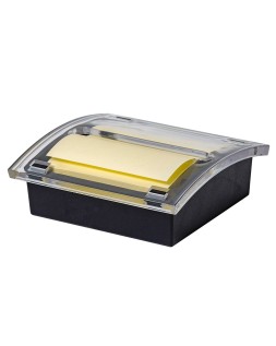 Dispensador compuesto por una base negra de ABS y una tapa dispensadora hecha de poliestireno. La base es solida y estable, para poder sacar notas del dispensador con comodidad. Incluye 1 bloc de 100 notas zig-zag de 76 x 76 mm de color amarillo (KF02161). Color negro / transparente. Compatible con los blocs de notas zip-zag de 76 x 76 mm. Medidas : 106 x 106 x 40 mm.
