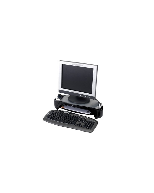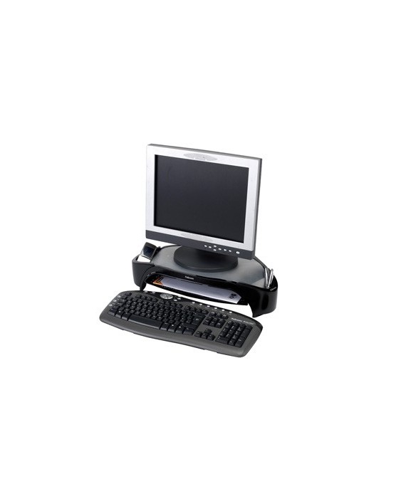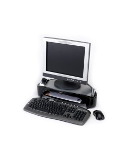 Ajusta la pantalla a la altura de los ojos para prevenir malas posturas. Diseño triangular que permite un puesto de trabajo despejado. Ajustable a 3 alturas. Incluye 2 departamentos para colocar accesorios, móvil, etc. Incluye bandeja de documento. Soporta monitores TFT hasta 21 o hasta 18 kg de peso. Medidas: 480 x 105 x 330 mm. Peso: 1,5 kg.