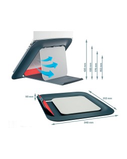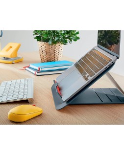 El elevador Leitz Ergo Cosy para portátil eleva la pantalla de tu ordenador portátil para aumentar tu comodidad de visualización y ayudar a mejorar la postura. El uso de un elevador para portátiles también favorece el flujo de aire, manteniendo la batería del portátil y otros componentes frescospara mantener altos niveles de rendimiento. Con su diseño minimalista y s us colores de acabado mate, este elegante soporte para portátiles mejorarála salud y el bienestar creando sin esfuerzo la configuración perfecta pa ra el trabajo activo. Combínalo con otros productos Leitz Ergo para crear