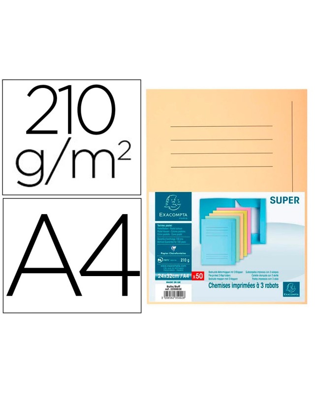Subcarpeta cartulina con 3 solapas exacompta din a4 impresa crema 210 gr
