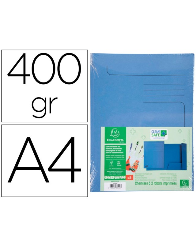 Subcarpeta cartulina exacompta clean safe din a4 con 2 solapas azul 400 gr paquete de 5 unidades