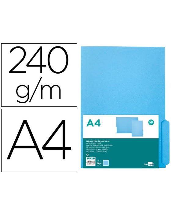 Subcarpeta cartulina liderpapel din a4 pestaña derecha 240g/m2 azul