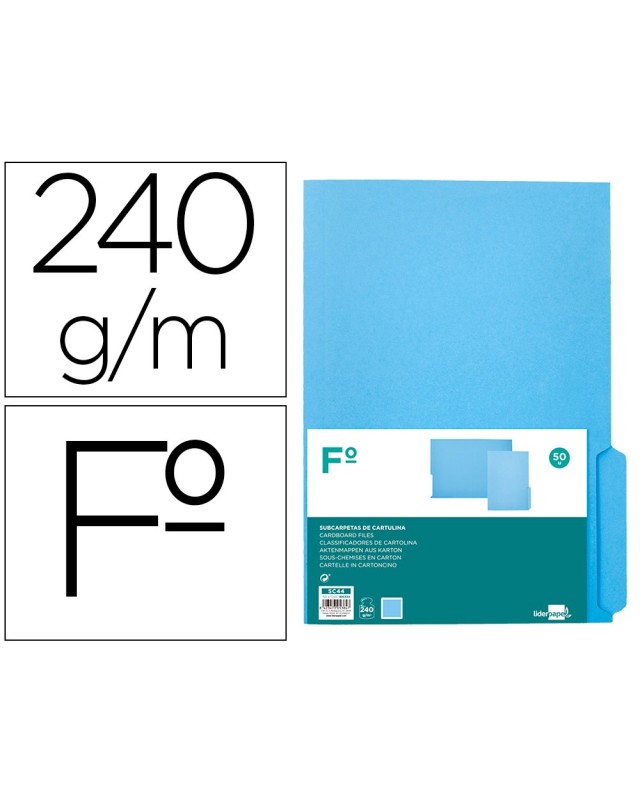 Subcarpeta cartulina liderpapel folio pestaña derecha 240g/m2 azul