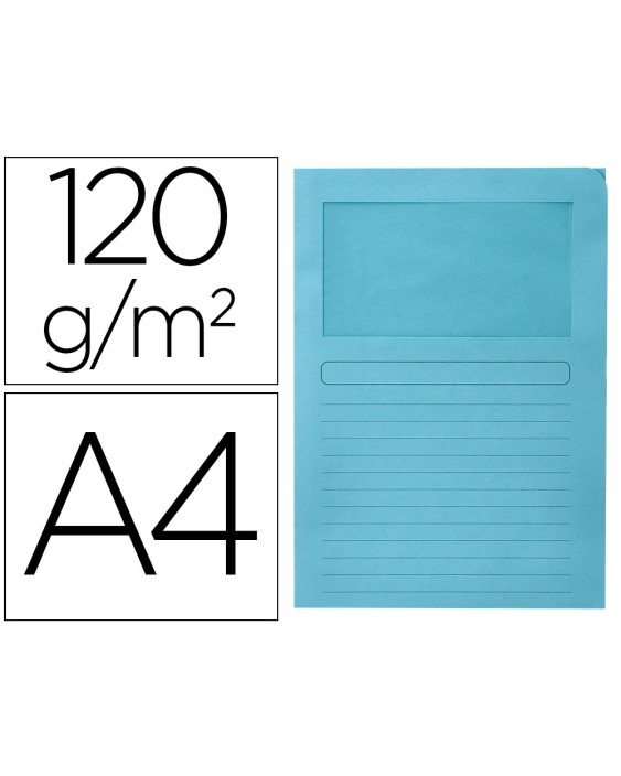Subcarpeta cartulina q-connect din a4 azul con ventana transparente 120 g/m2