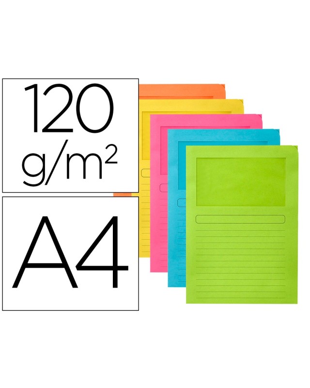 Subcarpeta cartulina q-connect din a4 colores surtidos con ventana transparente 120g/m2 paquete de 25 unidades