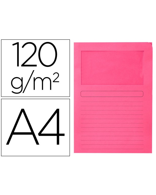 Subcarpeta cartulina q-connect din a4 rosa con ventana transparente 120 g/m2