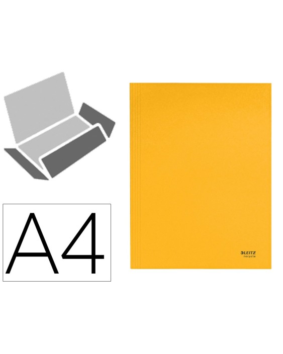 SUBCARPETA DE 3 SOLAPAS DE CALIDAD SUPERIOR Y LLAMATIVA. UNO DE LOS TIPOS DE SUBCARPETA MÁS UTILIZADAS PARA LA PROTECCIÓN Y EL TRANPORTE DE DOCUMENTOS. CON SOLAPAS INTERIORES PARA EVITAR QUE LOS DOCUMENTOS SE SALGAN. FABRICADA CON CARTÓN 100% RECICLADO, NEUTRO PARA EL CLIMA GRACIAS A LA REDUCCIÓN Y COMPENSACIÓN DE CO2, 100% RECICLABLE Y CON CERTIFICACIÓN MEDIOAMBIENTAL BLUE ANGEL. ESTA ROBUSTA Y PRÁCTICA CARPETA COMPLEMENTA PERFECTAMENTE OTROS PRODUCTOS DE LA GAMA LEITZ RECYCLE Y ESTÁ HECHA PARA DURAR. PRODUCTO DE PAPELERÍA ECOLÓGICA, MODERNO Y CONTEMPORÁNEO QUE QUEDARÁ GENIAL EN CASA Y EN LA OFICINA. CON LA GAMA ECOLÓGICA RECYCLE DE LEITZ PUEDES MEJORAR TANTO EL ENTORNO DE TU OFICINA COMO EL MEDIO AMBIENTE DE NUESTRO PLANETA.
