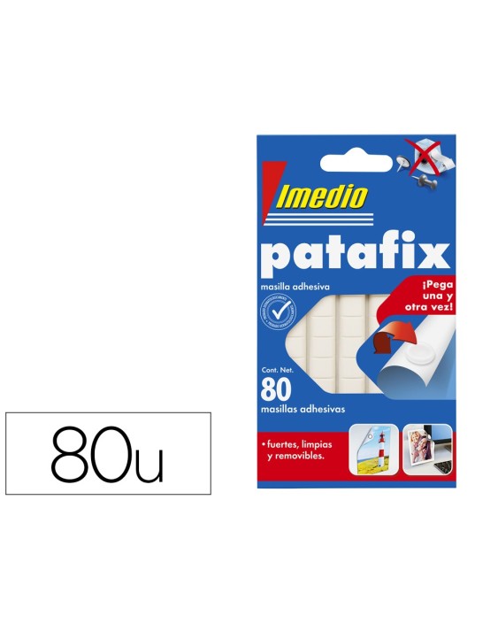 Patafix es un adhesivo removible y reutilizable para fijar de forma rápiday limpia pequeños objetos, como fotos, postales, dibujos, pósteres, etc. a diversas superficies, como paredes, puertas o muebles. Es la alternativamás inteligente a los clavos, la cinta y las chinchetas. Miles de usos en casa, el colegio y la oficina. Dermatológicamente probado.