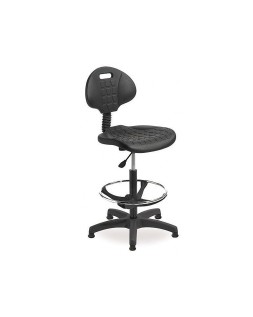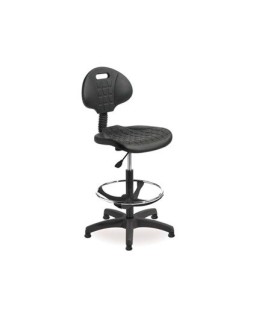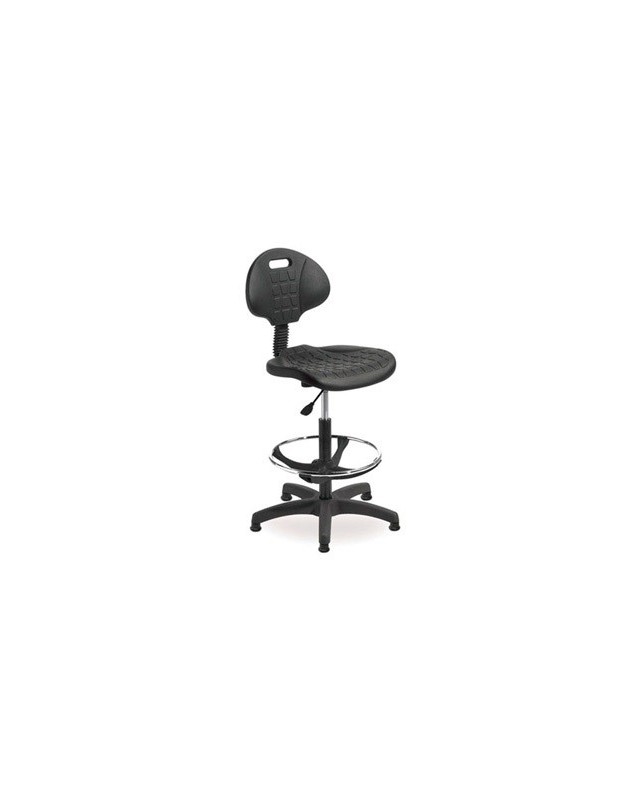 Uso industrial de alta resistencia. Asiento y respaldo: en polímero técnico de color negro. Pistón: de gas de largo recorrido. Base: polímero técnico con tacos antideslizantes. Aro reposapiés regulable en altura. Admite ruedas opcionales. Altura del taburete: 93 + 25 cm. Altura del respaldo: 33 cm. Altura del asiento: 56-81 cm. Ancho del asiento: 42 cm. Profundidad del asiento: 47 cm. Horas de uso: 8 horas. Peso del taburete / peso máximo soportado: 11,90 kg / 125 kg.