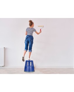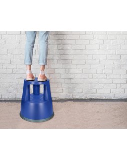 Taburete q-connect ruedas retractiles tres ruedas dos niveles color azul