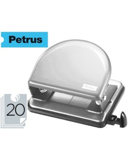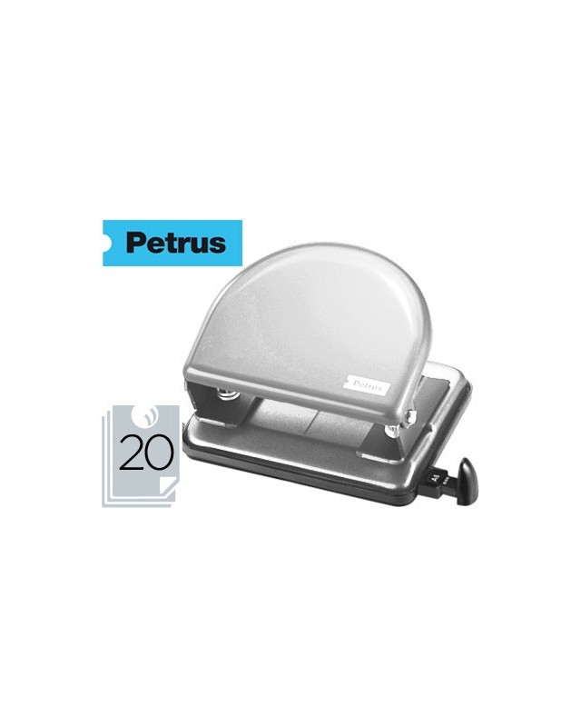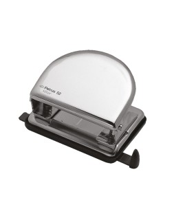 Cuerpo metálico pintado y cubeta de recogida del papel de plástico. Con regleta tope para alinear el papel. Con capacidad para perforar 20 hojas. Ahora con punzones más afilados que hacen que se taladre con mayor facilidad. Además, se ha incorporado una nueva regleta que permite un ajuste perfecto y no se mueve mientras se taladra. Asimismo, lleva una ventana que enmarca el formato seleccionado. Medidas de la base: 115 x 60 mm.