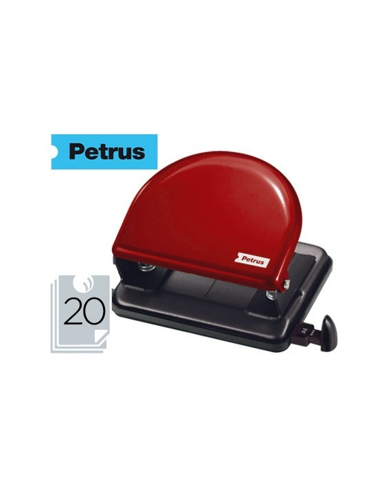 Cuerpo metálico pintado y cubeta de recogida del papel de plástico. Con regleta tope para alinear el papel. Con capacidad para perforar 20 hojas. Ahora con punzones más afilados que hacen que se taladre con mayor facilidad. Además, se ha incorporado una nueva regleta que permite un ajuste perfecto y no se mueve mientras se taladra. Asimismo, lleva una ventana que enmarca el formato seleccionado. Medidas de la base: 115 x 60 mm.