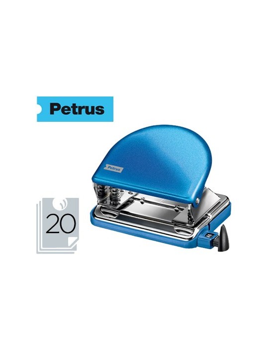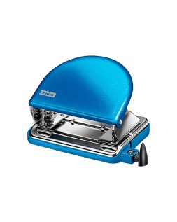 Taladrador completamente metálico. Capacidad de taladro hasta 20 hojas. Punzones más afilados que permiten taladrar con menos esfuerzo. Regleta tope con formatos impresos y ventana para mayor visibilidad y mejor fijación. Cubeta de plástico EVA de gran durabilidad. Garantía de 10 años. Medidas de la base: 140 x 94 mm.