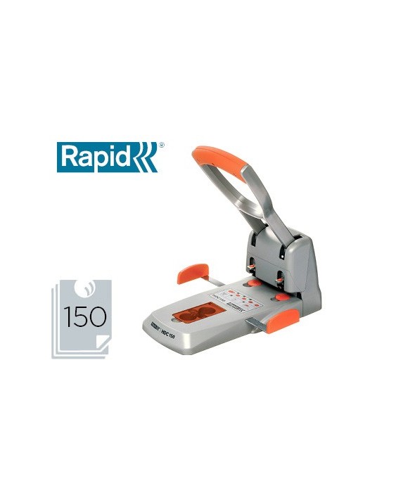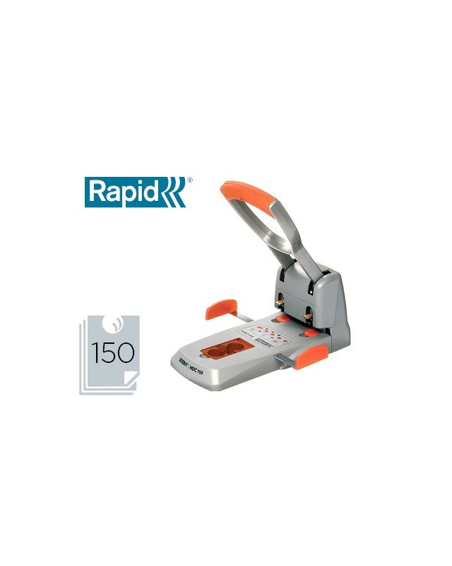 Taladro de dos agujeros con palanca ergonómica de goma de fácil sujeción que requiere menos esfuerzo. Se puede utilizar en casa, en el colegio o en la oficina. Capacidad para hacer 4 agujeros con la posición 88 en la barra guía. Diámetro del taladro: 5,5 mm. Capacidad de perforación hasta 150 hojas. Color combinado plata/naranja. Medidas: 192 x 204 x 387 mm.