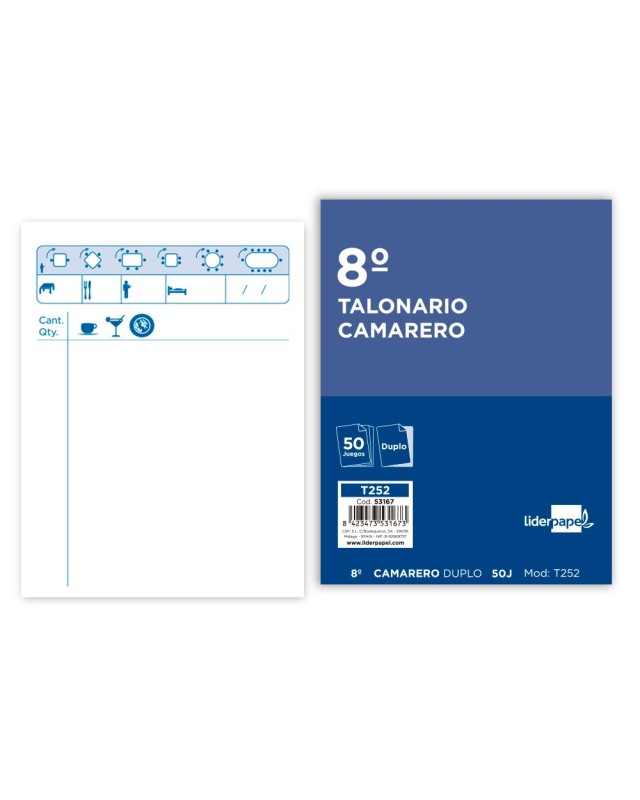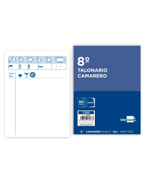 Talonario liderpapel camarero octavo original y copia t252 zig zag