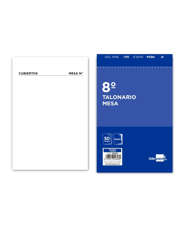 Talonario liderpapel camarero mesa octavo original y copia 231 papel autocopiante