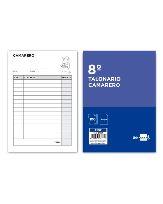 Talonario liderpapel camarero octavo sin iva 102